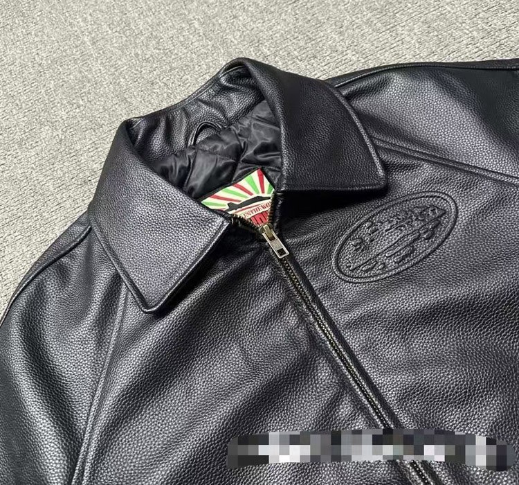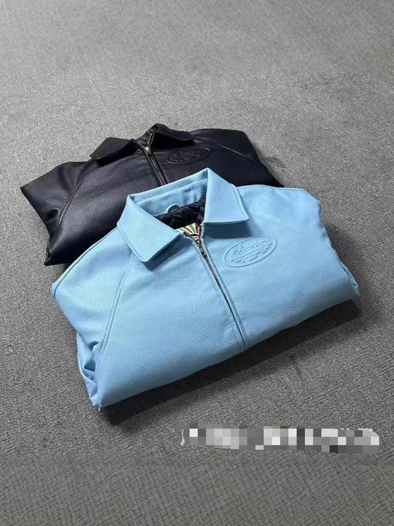 Corteiz Solid Color Lapel Collar Zip-Up Long-Sleeve Leather Jacket-5029